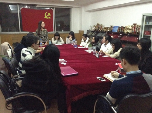 2014年11月18日(周一)晚八点至十点,外国语学院12级全体党员、预党及入党积极分子在如心楼409会议室召开了入党积极分子答辩会。会议由1212党支部书记智敏辅导员主持,全会应到18人,实到17,1名入党积极分子因出国交流未能参加本次会议。